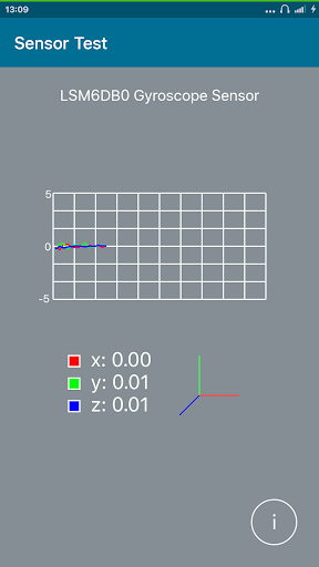 With the horizontal position of the device, the values along the axes: z = ~ 9.8 m/s^2, x = 0, y = 0).