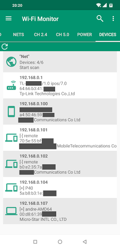 - the charts for available networks by channels groupped for 2.4 or 5.0 GHz