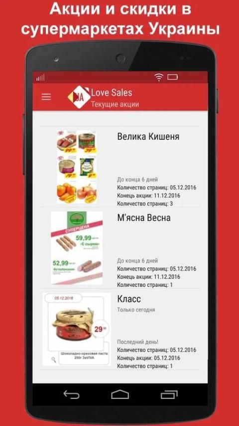 Recent promotions and discounts supermarkets of Ukraine 2018, as well as sales and lowest prices for the goods retail chains in your city The purpose of the application "LoveSales" -! Help you to buy all sorts of cheap goods and save on everyday purchases! Promotions, discounts and catalogs in the application is constantly updated, in every supermarket you will find promotional offers to their holding period. We presented categories: food, cosmetics, electronics, pharmacy, building supermarkets and online stores.