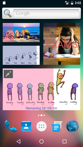 Sometimes it is nice to see how some period of our life is passing by. It could be anything like working days, season, holiday, army or business trip. Just set start and end dates and the widget will always show how much time has passed and remaining. You can choose a background image, capture color and size so the widget become a nice decoration for your smartphone or tablet.