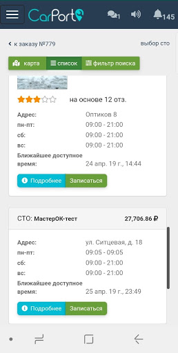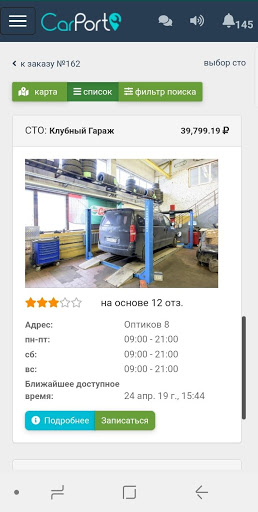 видно: где, когда и за сколько можно обслужить или починить ваш автомобиль, это