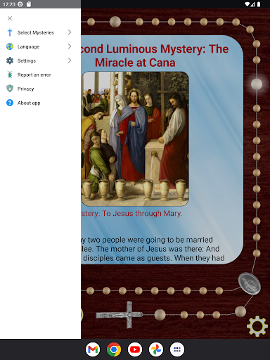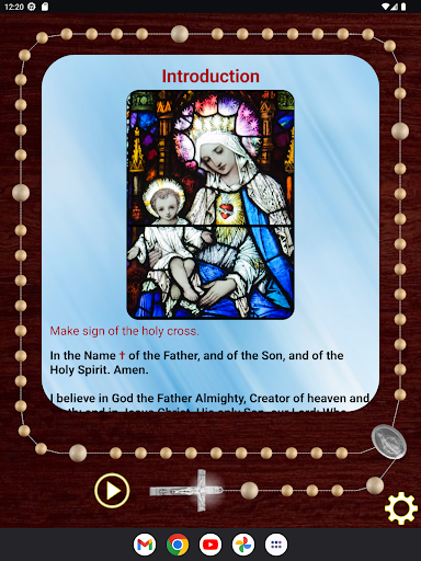 This Rosary app is intended to help you meditating while praying the rosary. Besides the text of the prayers, the app shows nice pictures and readings corresponding to the current mystery as well as the fruits of the mystery.