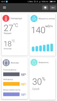 Мобильное приложение для удаленного управления бризером. Визуализация актуальных данных о климате в помещении, возможность задавать параметры работы устройства из любой точки мира.
