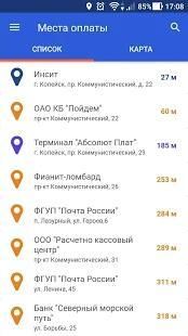 - находить ближайшие места для оплаты наличными;