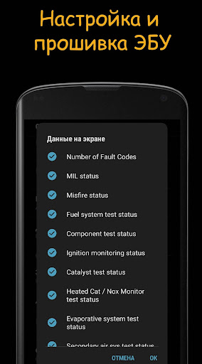 Diagnostic scanner, car ECU by OBD using the modules of the ELM 327 via Bluetooth or USB. The majority of cars, both domestic, and foreign production are supported.