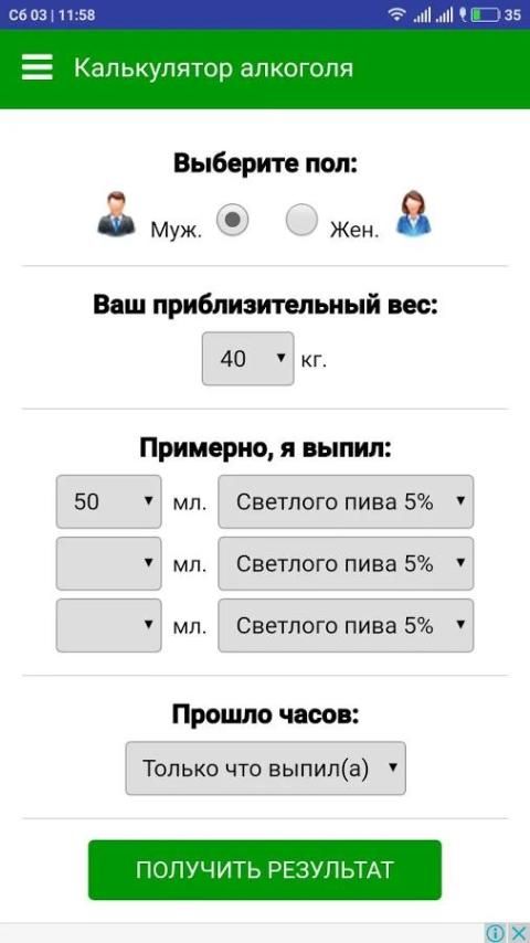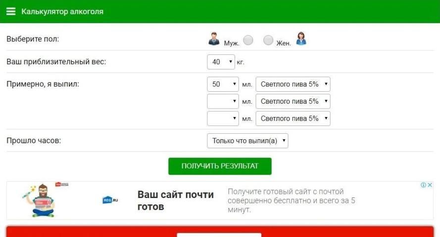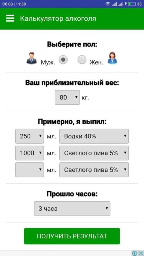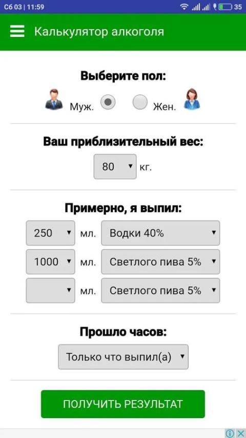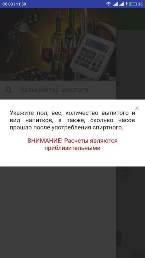 Калькулятор алкоголя, алкогольный калькулятор Alco