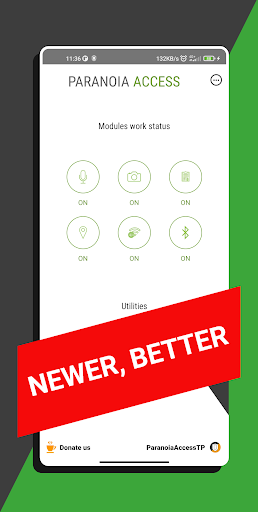 The renewed Paranoia Access without wasting power protect your camera and microphone on a regular basis. The application will take care of your privacy and keep your phone safe.