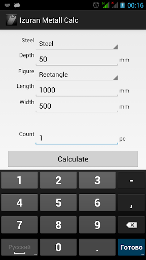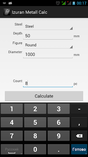 Minimalistic weight metall calculator. Special for "IZURAN" company from Perm' (Russia).