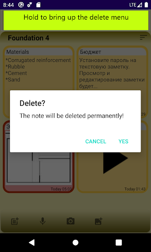 Press and hold note to delete.