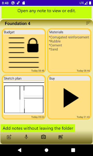 You can add any type of notes right inside the folder.