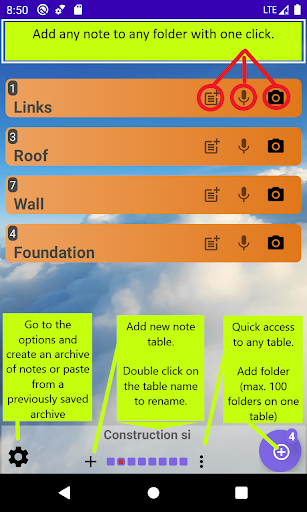 Click on relative icon to creat audio, text or photo note.