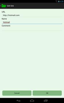 Program for storage links to favorite sites and pages regardless of the browser. Allows you to add links manually, as well as from third-party applications. You can open it in your default browser, as well as any available. You can also send links through the available messengers. You can search for text in the title and in the comments.