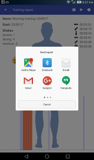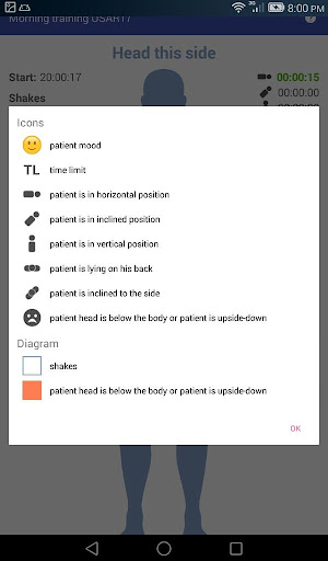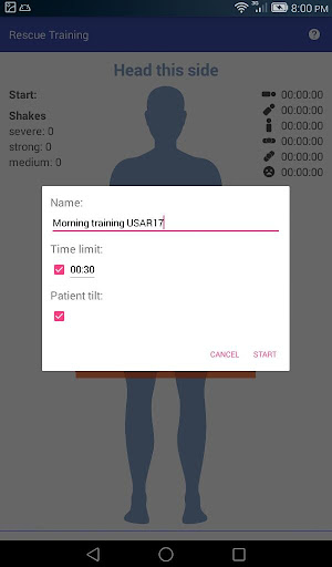 Attach your device to stretcher or manikin, run the application and you will get instant feedback. The application will cry if you shake stretcher or manikin and will moan if patient head is below the body or patient is upside-down. When you finish training, the application will provide a report: the amount and strength of the patient's shakes, tilt angles, time.