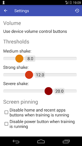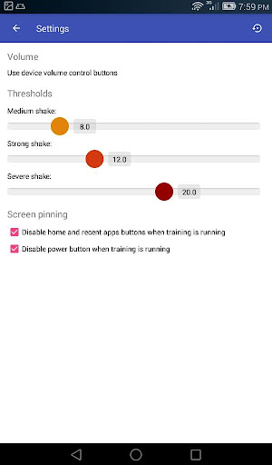 Shake sensitivity thresholds can be adjusted in the application settings.