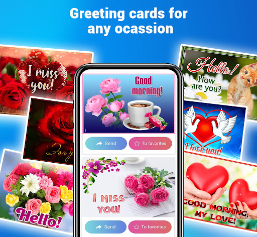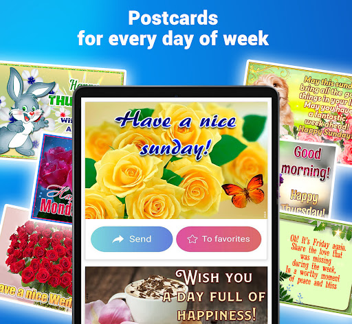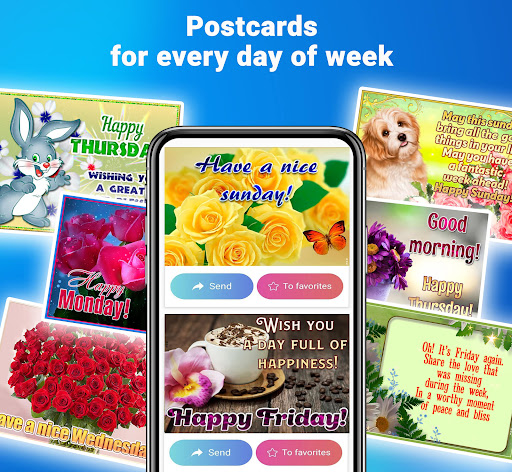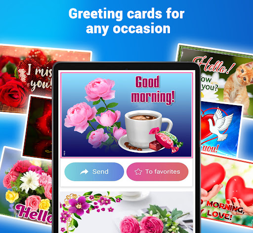 Cute greeting cards with holidays, happy birthday, good morning postcards as well as stickers for WhatsApp (Wastiker) and images with congratulations for any ocassion.