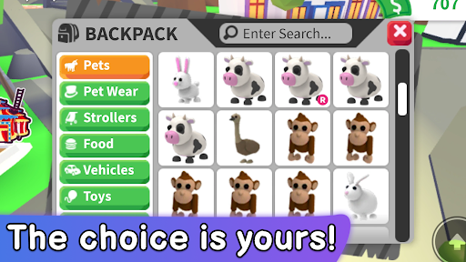 Do you want a pet? Playing Roblox Adopt mi is a lot of fun. Install it soon and start playing Adopt mi for free with your friends. You can buy a lot of pets. Make a shelter for pets, feed and take care of them. There is a pet store on the Roblox Adopt Mi game map. If you want, you can become a veterinarian and treat the adept Mi mod. You will need money - robucks. By the way, they are free robux for roblox in our application. You can play Adopt mi alone or with friends. The Adopt mi game will help you to make friends with pets and get yourself anyone. For example, shelter a puppy, kitten or unicorn. But remember that you will have to take care of the additional mod. You will have to feed the roblox game from a pet store. They will help you choose the best pet food. You will also get roblox skins that you can put on!