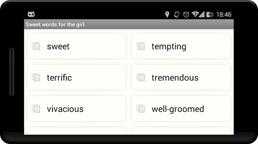 In this simple widget and application which consists about 100 words that will come up with a nice compliment to surprise her with unusual words.