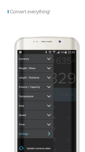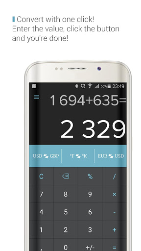 multifunctional calculator with a minimalist style, you will say “There are many of these calculators already on the market!” But that is not the case. In our app, the functions of a calculator and a converter are significantly more conveniently combined. We provide a quick menu with your latest and favourite conversions. No need to look for the same value if you use a particular operation often! CalCon remembers them for you! Your popular or favourite conversions will be shown on the main screen of the calculator, one click and “Viola!” You’re done!'