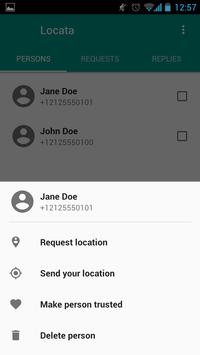 In the app you can give some persons a trusted status. In this case they can receive your location in auto-reply mode. As soon as a trusted person send you a location request the Locata app commit reply with your current coordinates by itself. This feature is particularly useful, for example, when you need to monitor the whereabouts of children or relatives, and when you don't want to disturb them. Automatic response to the request will be performed, even if incoming message sounds are turned off.
