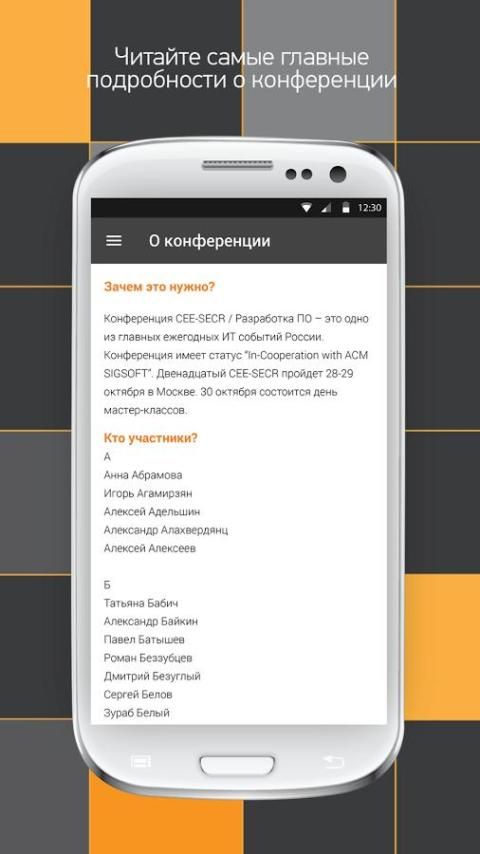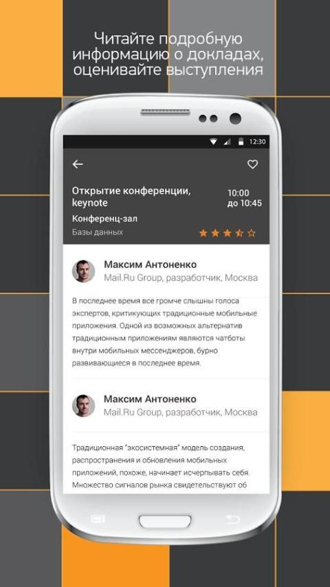 • quickly and conveniently get the most complete information about the participants and presentations at the conference;