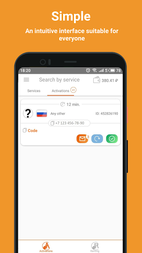• EARNINGS. Maybe you are engaged in SMM, targeting, context, and other activities on the network? Do you have a constant need for account registrations, and do you need a phone number for them? No need to run for a number in the mobile phone shop every time! Just purchase numbers from us in the app! Both for a short period of time – ACTIVATION, and for a long period of time – RENT.