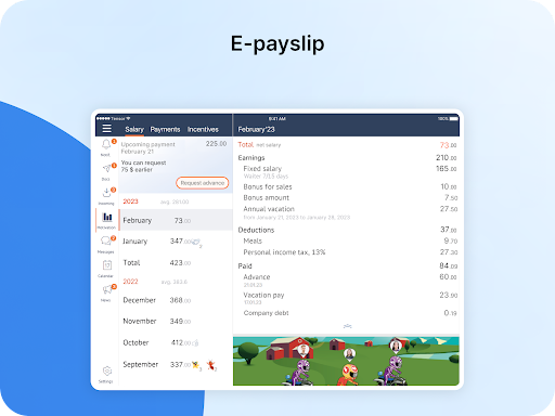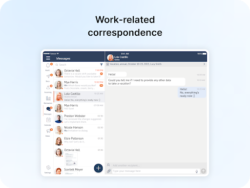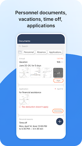 • Personnel documents connected with hiring, transfers, vacations, and time off, including applications and requests—create and sign them right in the app.