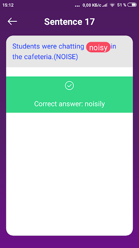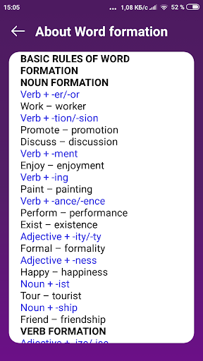 In this app you will NOT find endless lists of suffixes, prefixes, rules and exceptions. We do believe that the best way to master your skills is practice. So, we tried to develop this app in a way that will help you memorize the main word building rules automatically.
