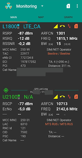 For Android 5.1 or higher. Dual SIM support. Try free version before buying. To see Cell on map BTS file must be loaded. ARFCN and Band are available for Android 7 or higher.