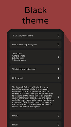 You can select the text size, theme color, and manage the note itself in the Simple Notes. Create, edit, delete.