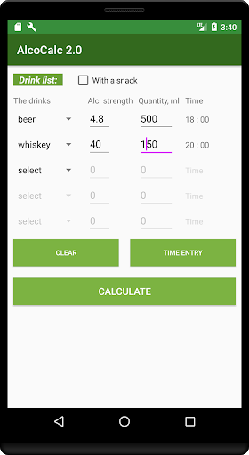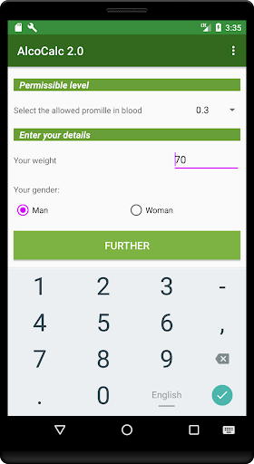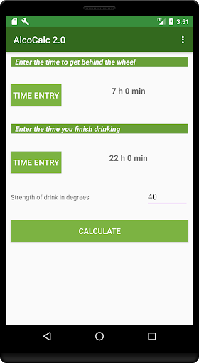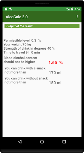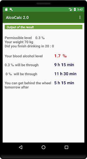 The AlcoCalc program will be needed primarily by motorists who want to be sure that they are driving sober. The alco calculator program is intended for an approximate calculation of the degree of blood alcohol content and the amount of time required to reduce it to the norm per mille established in your country. The calculation is made according to the formula of the Swedish chemist Eric M.P. Widmark. The calculation of the concentration of alcohol in the blood is approximate and depends on many factors, including the quality of the snack. Therefore, try to check yourself with a breathalyzer and give yourself extra time. This program is not evidence for traffic police officers and in court. Do not drink at the wheel!