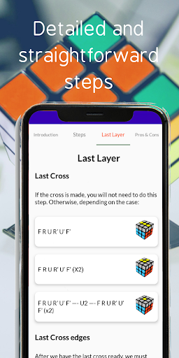 -Last Layer: showing the rubik's cube algorithms with which you can solve the last layer of the Rubik's cube, making the last cross, ordering the edges and finally, solving the corners.