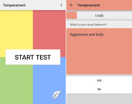 Temperament test - this app psychological test. In order to find out what type your temperament is, you have to answer 80 questions by choosing one of two options: YES or NO.