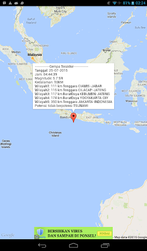 Informasi Gempa, menggunakan teknologi push, mendapatkan info gempa tanpa membuka aplikasi, lebih personal dengan setting lokasi sendiri dan maksimal radius dari lokasi pengguna, sehingga hanya informasi gempa yang penting saja yang diterima.
