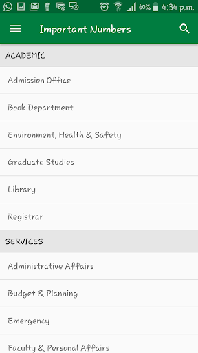 • Social Media — Keeps connected with university social media pages of Instagram, Facebook and Twitter.