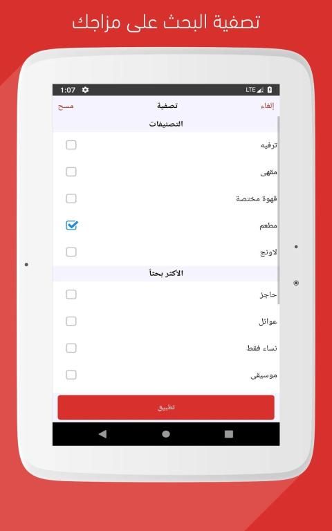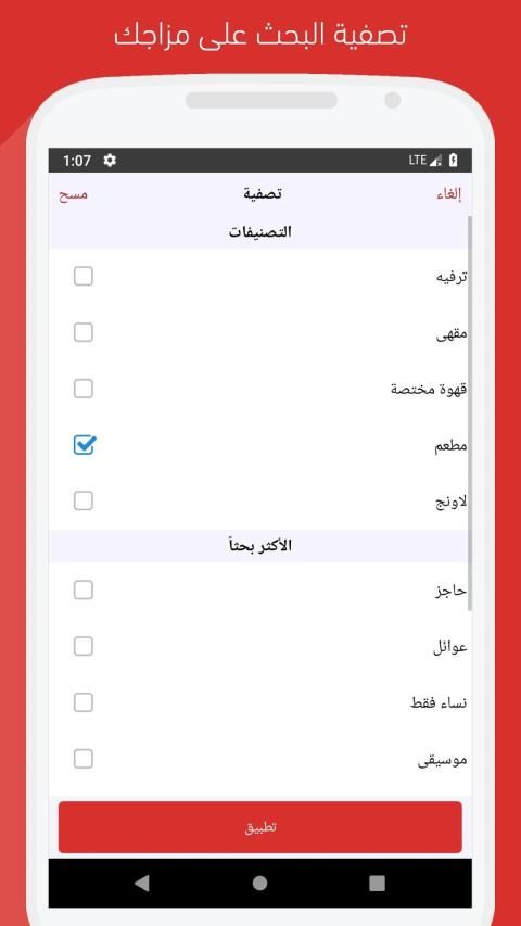 تطبيق أماكن يوفر لك الأماكن اللي حولك وبمزاجك تقدر تحدد احتياجك إذا كنت ترغب في الخصوصية نعلمك وين المطاعم اللي توفر حواجز أو طالع مع أصحابك وتبون مقهى يعرض مباريات قريب أماكن يقدم لك هذا كله وأكثر