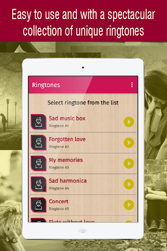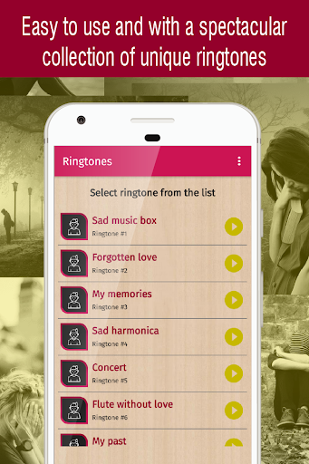 sad sounds ringtone is the new ringtones app to enjoy great sounds and tones (special sounds and sms tones included), it has a friendly interface, easy to use and fast and the connection to the servers is good optimized.