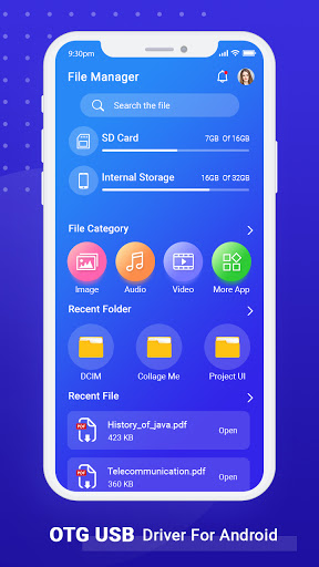 for android allows you to manage files from any USB mass storage device with a FAT32 or NTFS file system using the USB OTG port of your device, tablet or phone.