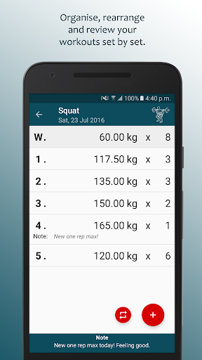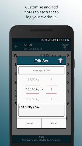 - Easily create notes for any set or workout to look back upon.