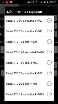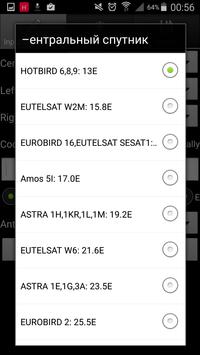 2. If app found your location, you must select desired satellite. To do this you must find icon with magnification glass and tap it. On the list you will find all satellites with elevation angle above zero degrees. Remember: satellite name doesn’t affect the calculation of angles. Important thing is satellite position.