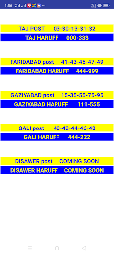 result, in this app you will get Satta number for free and together you will get Haroof This app is known as Satta King and play in more India this game and through this app, you get connected which you bet You can find these numbers in the market: Gali Satta King
