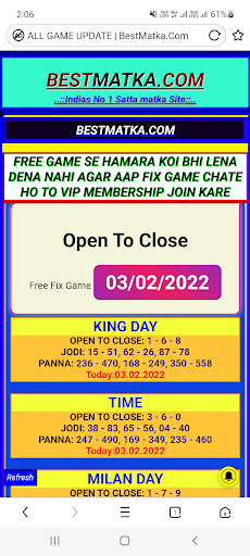 Hello Visitors We Launches Application Update, Where You Get Fastest Satta Matka Result Of Kalyan Matka, Bhootnath Day/Night, Milan Day/Night, Rajdhani Day/Night Etc. We Also Provide Daily & Quickly Updated Charts, Records And Free Matka Guessing Tips
