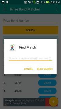 Match your prize bond number with the draw numbers. -> Add your multiple prize bond numbers to the database. -> Search with the number that wins the prize. -> Check the numbers if matches. :) keywords: prize bond, lottery