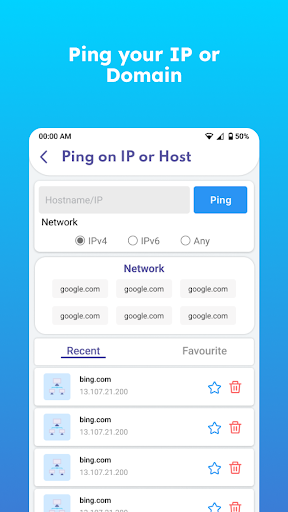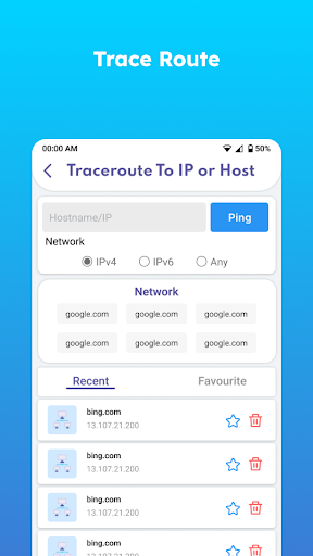 Access a comprehensive suite of essential networking tools within a single free wifi app. Perform tasks like Ping, Traceroute, DNS Lookup, ARP, Show Wifi Password, Free Wifi Password Scanner, and more, simplifying your network troubleshooting process.