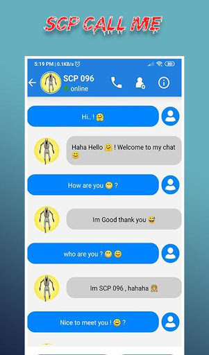 SCP 096 game fake call and chat simulation game is a simulation game in wish you receive fake incoming calls and fake incoming video calls from SCP, it also simulate having chat with him, its an easy app to use in order to entertain yourself and prank your friends and family and see their frightening and hilarious reactions, This is not a real calling and only a joke!