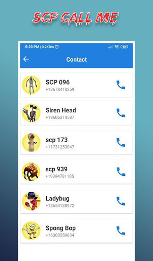 You can customize call settings and choose the incoming fake caller details with a personage of your choice also like: Serin Head, SCP 096, SCP 173, SCP 939, Ludy Bug and many more..