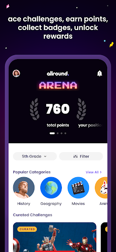 kids learn while they play interactive games and take on educational challenges as per their grade and favorite subject. kids can explore 100 challenges on history, geography, science and technology, literature and more.