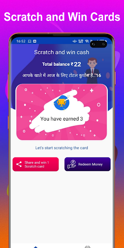 In Scratch To win Cash - Earn money Application You Have Daily Chance to Redeem best Rewards. You will Also Refer Your Friends to Earn Extra Rewards in Scratch To win cash.