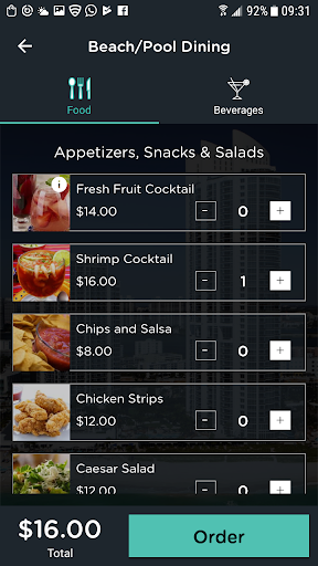 - Place beach/pool and in-room dining orders