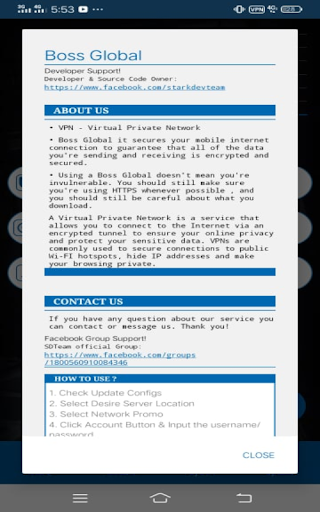 BOSSVPN Global is an easy to use VPN software for android devices. Our VPN service can help you to unblock regional internet restrictions, web filtering, bypass firewalls, and browse the web anonymously by tunneling all your internet traffic from your android device to our servers.