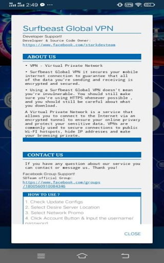 SURFBEAST GLOBAL VPN is an easy to use VPN software for android devices. Our VPN service can help you to unblock regional internet restrictions, web filtering, bypass firewalls, and browse the web anonymously by tunneling all your internet traffic from your android device to our servers.